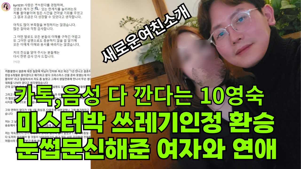 하지만 두 사람의 관계는 예상치 못한 방향으로 흘러갔습니다. 미스터 박이 갑작스럽게 연락을 두절했고, 결국 카카오톡으로 일방적인 이별 통보를 했다는 사실이 밝혀졌습니다.